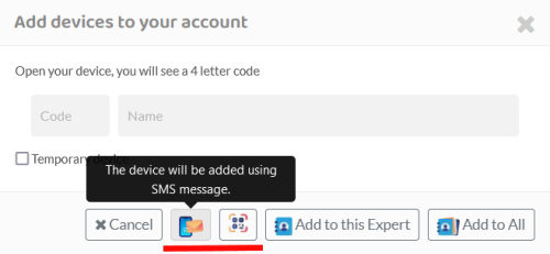 - In alternativa al collegamento dei dispositivi tramite il codice a quattro cifre, l’esperto può inviare un SMS gratuito utilizzando la piattaforma Esperto.