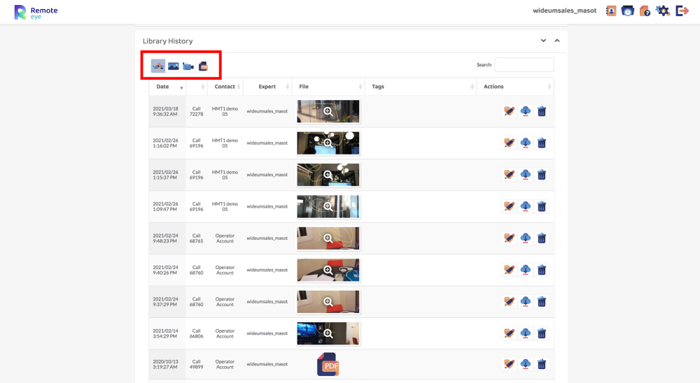 - L’esperto può filtrare le informazioni in base al tipo di file (video, immagine o file).