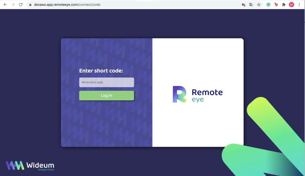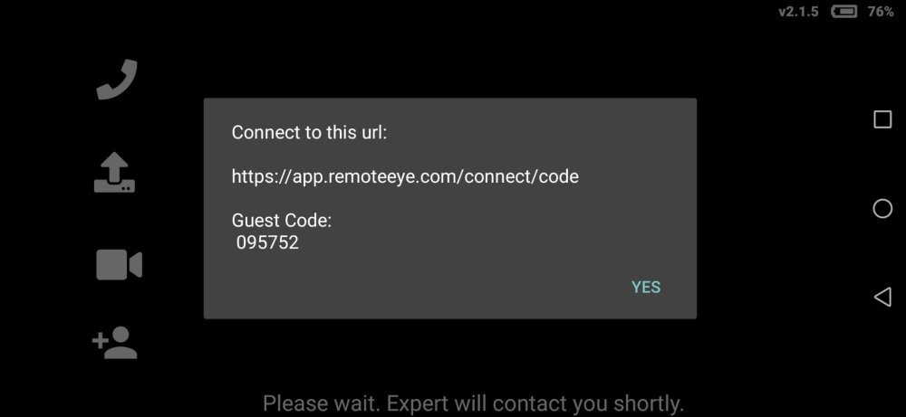- Questo “URL”: http://https://app.remoteeye.com/Account/Login porta a una pagina web in cui l’Esperto Ospite deve scrivere il codice fornito dall’Operatore.